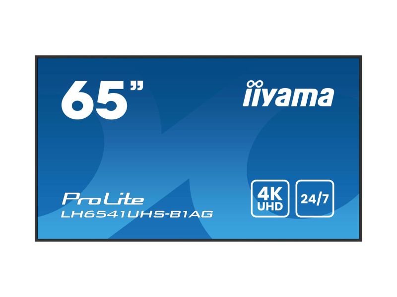 65″ 3840×2160, 4K UHD IPS panel, 1% Haze, Landscape and Portrait mode, Speakers 2x 10W , 3x HDMI, 500cd/m², Media Play USB Port, Control LAN / RS232C, VESA 500×500 -wallmount included