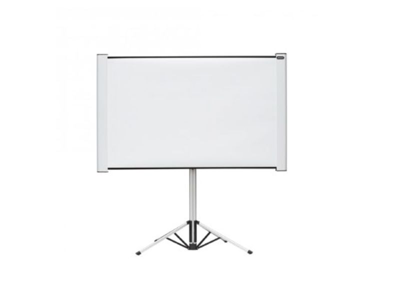 – Tripod screen in dual format: the screen can be set to 4:3 or 16:10 format – ideal for conferences and meeting rooms