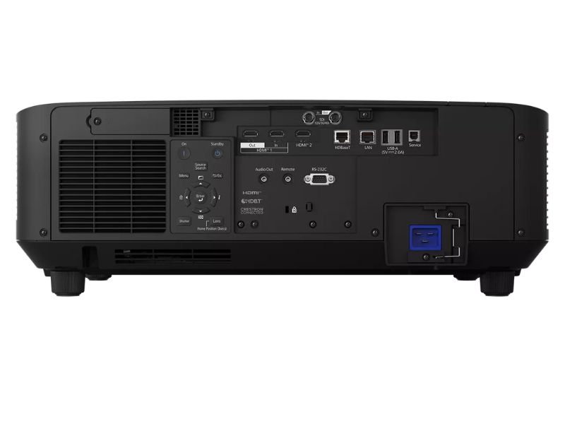 The projector offers versatile connectivity including 12G‑SDI I/O and HDMI I/O with 120 Hz 4K support. High brightness makes it compatible with all EB‑PU lenses, including the ELPLX02S UST lens with zero‑offset. Lens not included, so you can select the ideal option.