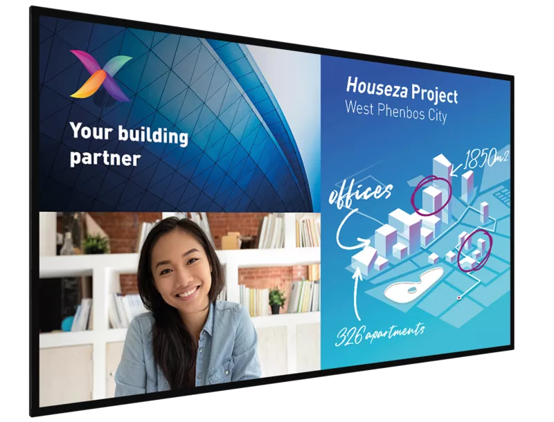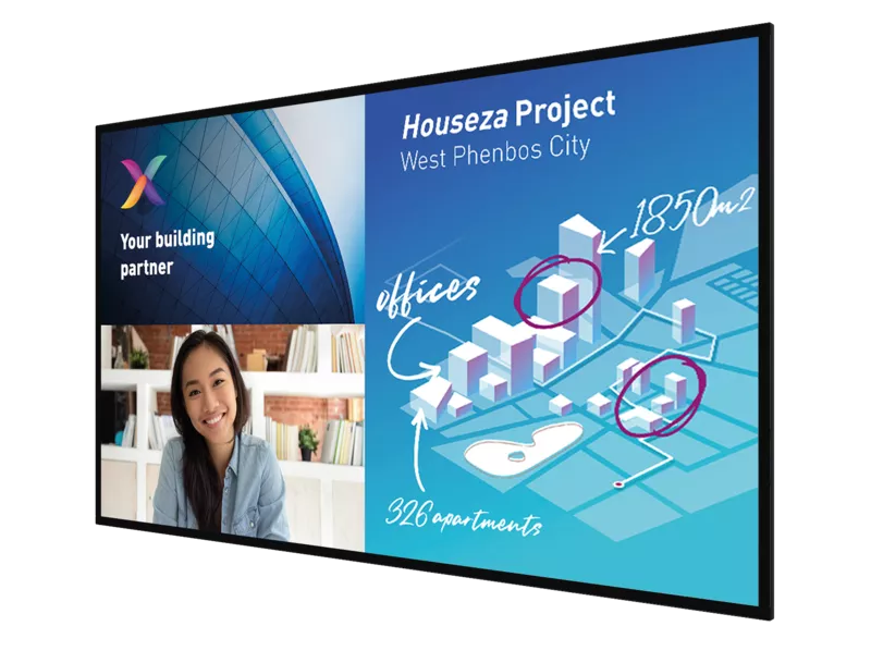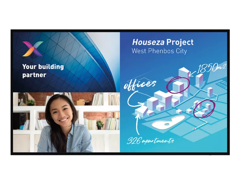 Take your meetings to the next level with the 86″ Philips C-Line interactive display. Thanks to its Android operating system and 10-point touch technology, it promotes collaboration and interactivity. Wireless screen sharing enables simultaneous connection of multiple devices, while the integrated OPS slot ensures seamless PC integration without additional cabling. Use the whiteboard mode for creative collaboration and benefit from easy management via CMND & Control and Crestron Connected certification for comprehensive remote control. Ideal for education, businesses and public institutions!